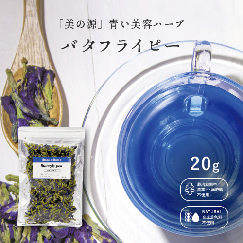 ハーブティー バタフライピー ホール 20g 青いお茶 蝶豆 乾燥花 青いハーブティー 無着色 無香料 ノンカフェイン 日本最終加工 送料無料