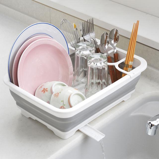 収納時に場所を取らない折り畳みタイプの水切りかご。