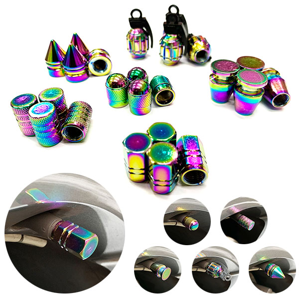 タイヤ エア バルブ キャップ エアーバルブキャップ 自動車 オートバイ バイク 原付 レインボー 同型4個セット ポイント消化 送料無料