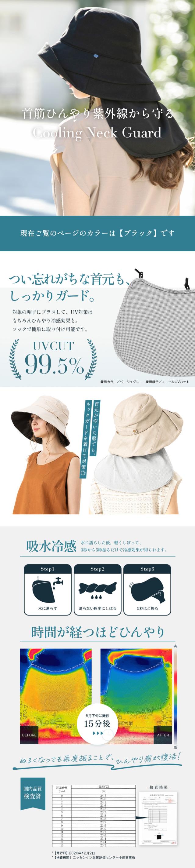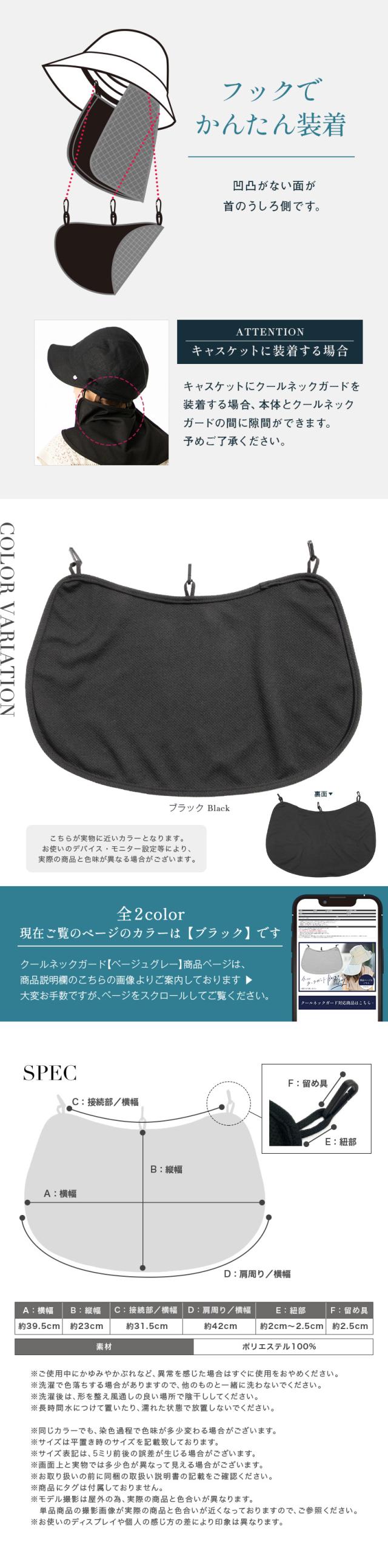 クールネックガード-ブラック(000) レディース 帽子 のハットやキャスケットの対象商品に装着出来る首後ろのUVカット対策 サイズも大きいので外出も安心