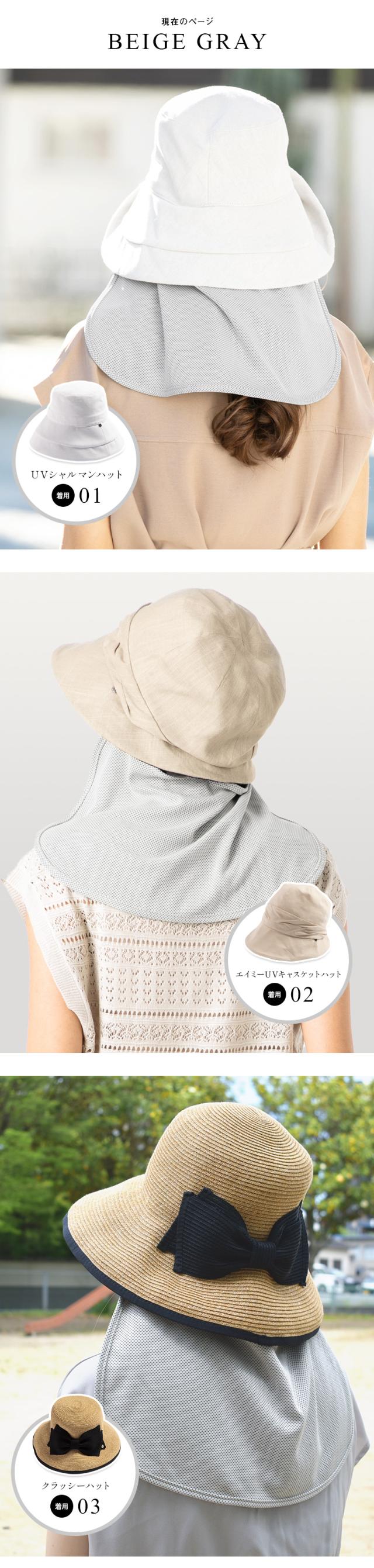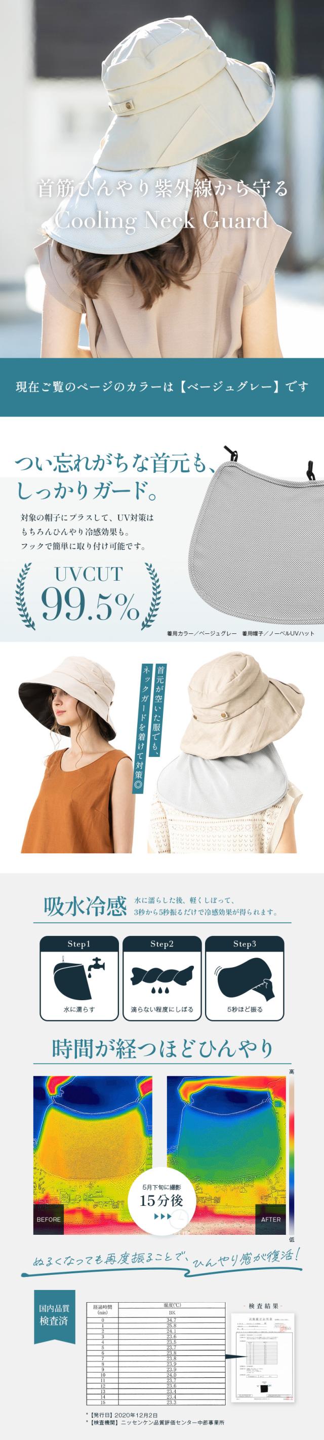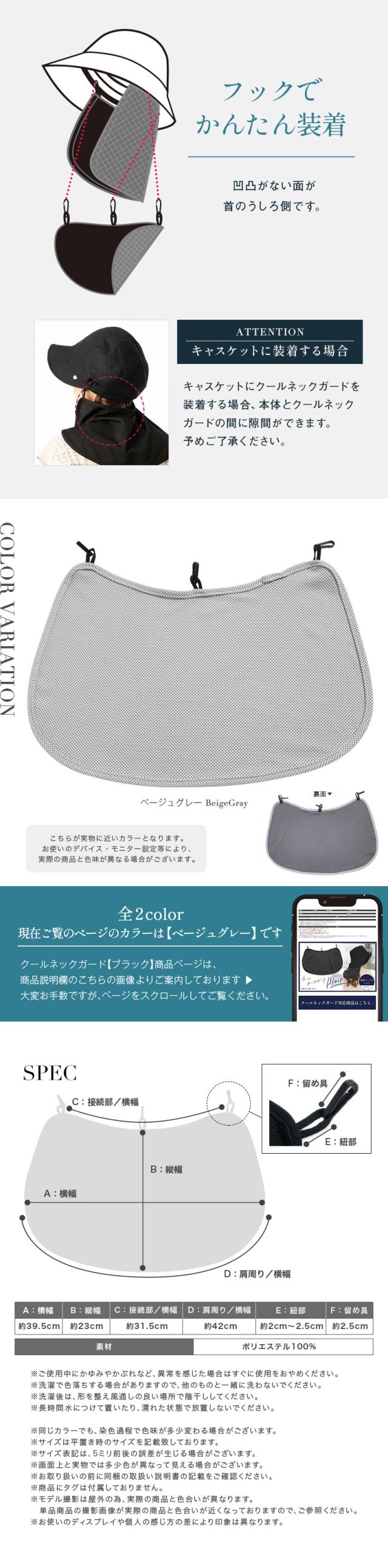 クールネックガード-グレー(029) レディース 帽子 のハットやキャスケットの対象商品に装着出来る首後ろのUVカット対策 サイズも大きいので外出も安心