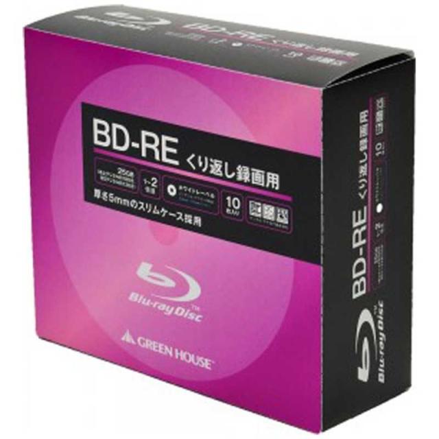 グリーンハウス 録画用BD-RE 1-2倍速 25GB 10枚 インクジェットプリンター対応 GH-BDRE25A10C