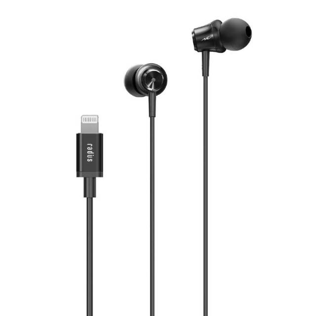 ラディウス iPhone用 Lightning ライトニング イヤホン リモコン・マイク対応 ライトニング端子 HP-NEL11K ブラック