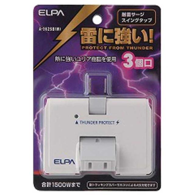 ELPA 耐雷 サージ付スイング 電源タップ タップ 3個口 A-362SB(W)