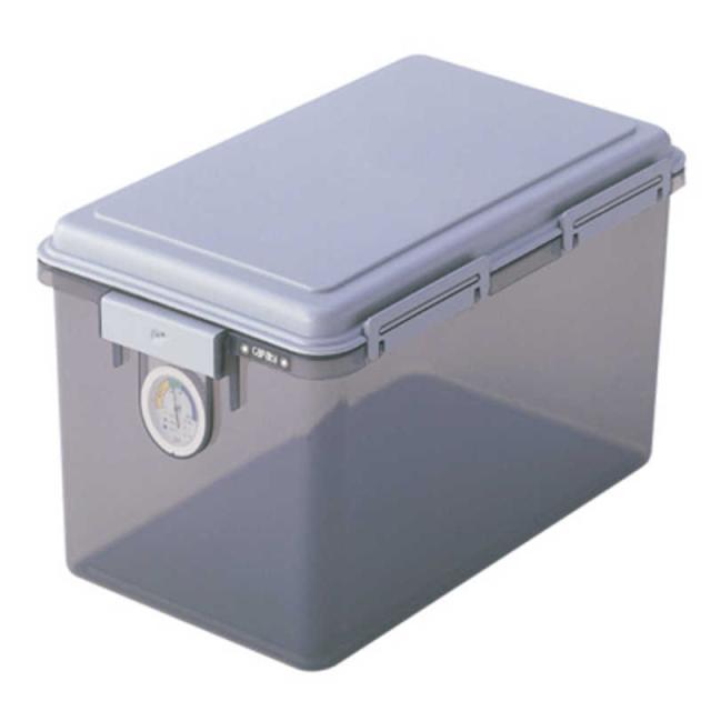 カメラ用品や食品・衣類など、湿気を嫌うものは身の回りに意外と沢山あります。それらを湿気から守って保管するのに最適なドライボックス。シリコンゴムのパッキンがしっかり密閉し、乾燥剤が除湿効果を発揮。湿度計付きで保存状態が一目瞭然。乾燥剤は効果がなくなっても1〜2日程度、晴れた日に天日に干せば最利用可能です。容量は余裕の27リットルで、カメラ機材などの保管に最適です。