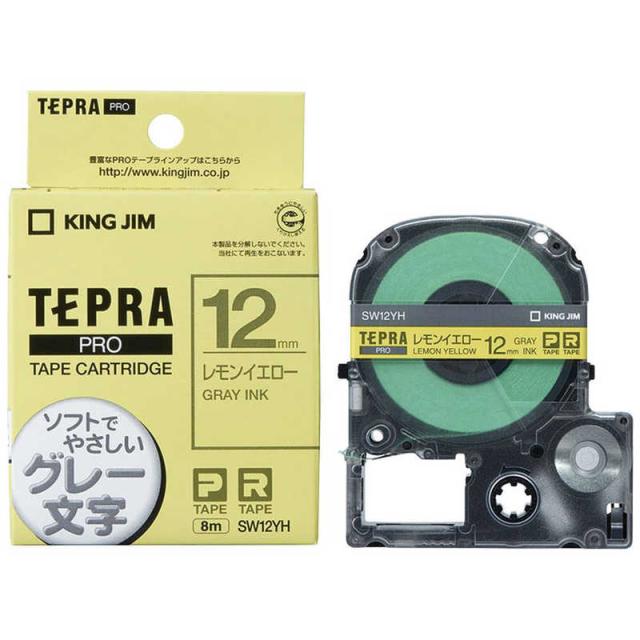 キングジム カラーラベル(ソフト)テープ TEPRA(テプラ) PROシリーズ レモンイエロー [グレー文字 /12mm幅] SW12YH (レモンイエロー)