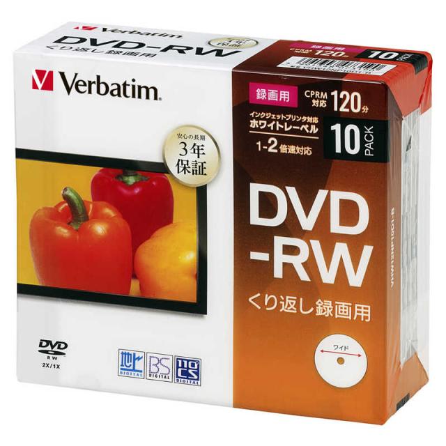 VERBATIMJAPAN 録画用DVD-RW(1-2倍速 4.7GB)10枚パック VHW12NP10D1-B