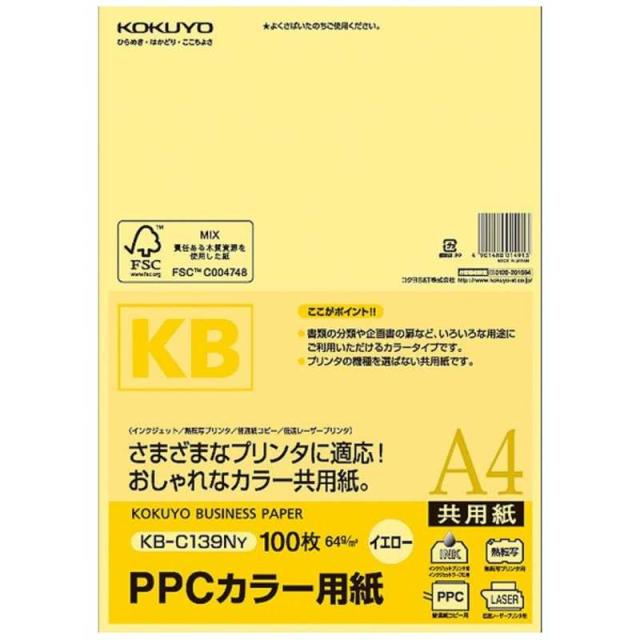 コクヨ PPCカラー用紙(共用紙) (A4・100枚/イエロー) KB-C139NY