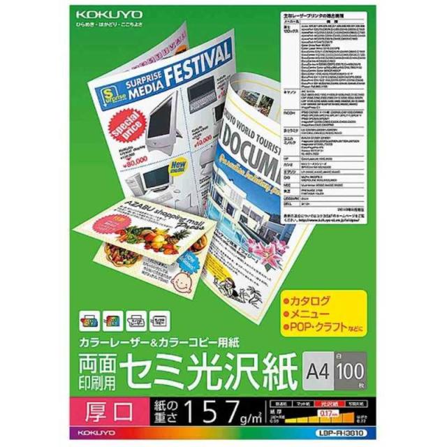 コクヨ カラーレーザー&カラーコピー用 両面印刷・セミ光沢紙・厚口 LBP-FH3810