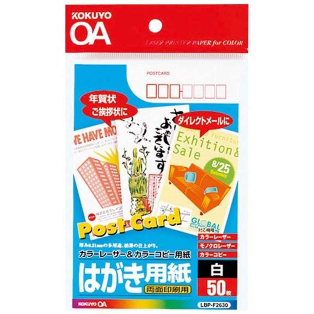 コクヨ カラーレーザー&カラーコピー用紙 両面 (はがきサイズ・50枚) LBP-F2630