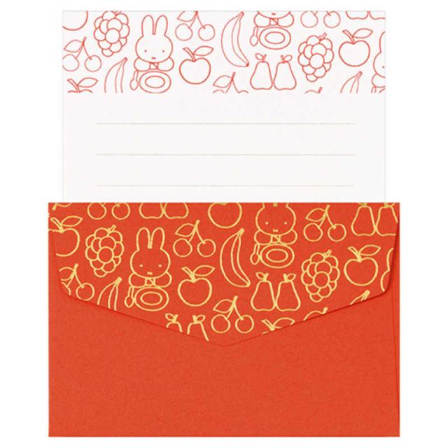 便箋と封筒の柄はミッフィーとくだものをモチーフにしています。