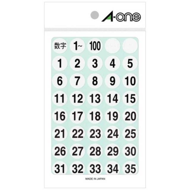 エーワン 特殊ラベル(数字・白・3シート) 08080