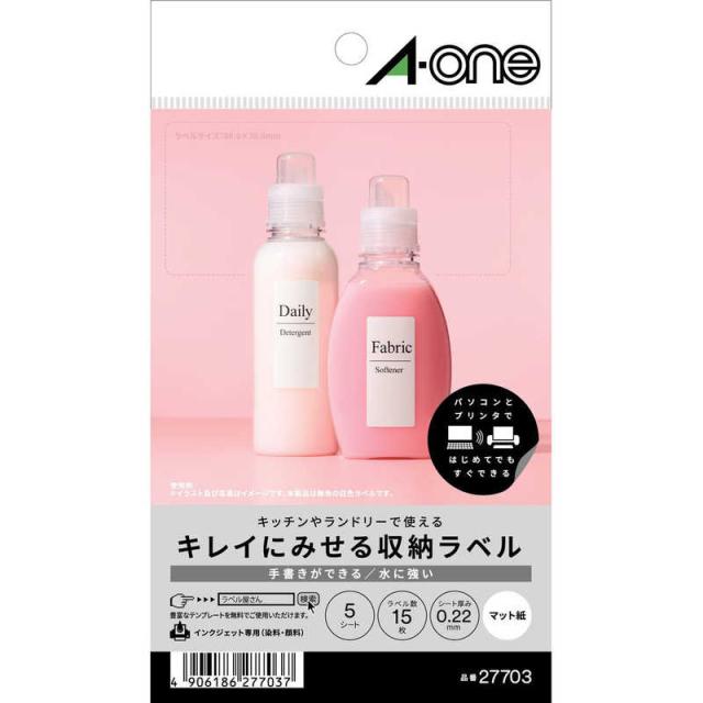エーワン キレイにみせる収納ラベル水に強いマット紙3面 27703