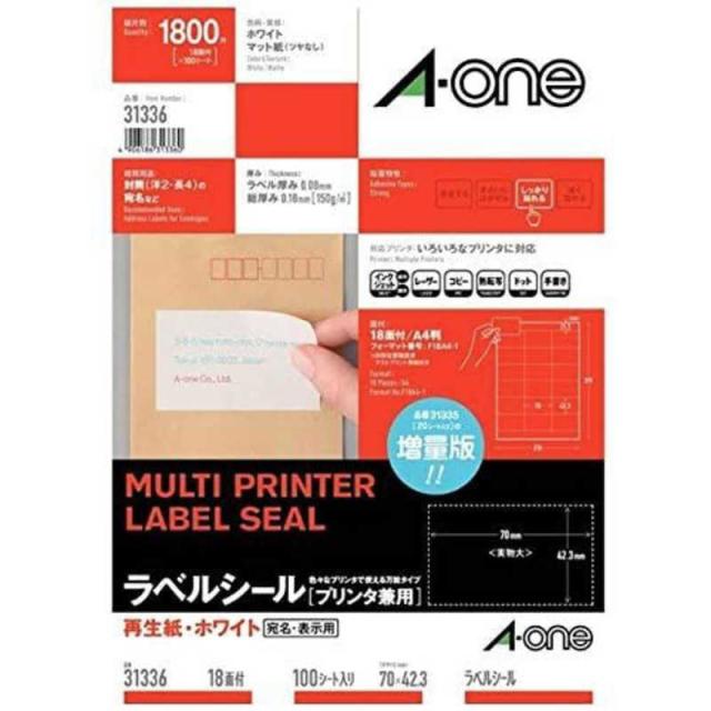 エーワン ラベルシール「プリンタ兼用」(A4サイズ:18面・100シート:1800片) 31336