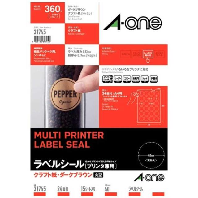 [プリンタ兼用/クラフト紙・ダークブラウン] (A4サイズ:24面 丸型・15シート:360片)