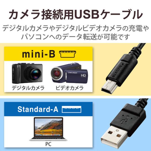 ●USB2.0 mini−Bを搭載したデジタルカメラやデジタルビデオカメラのデータをパソコンに転送できるUSBケーブルです。
