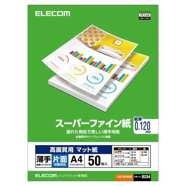 エレコム ELECOM 高画質用スーパーファイン紙(A4・薄手・片面50枚) EJK-SUPA450