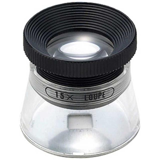 15倍の高倍率ルーペ。アルミプレートに0.1mm刻みのスケールが印刷されており、印刷物の検査、細かい平面物の測量に便利です。
