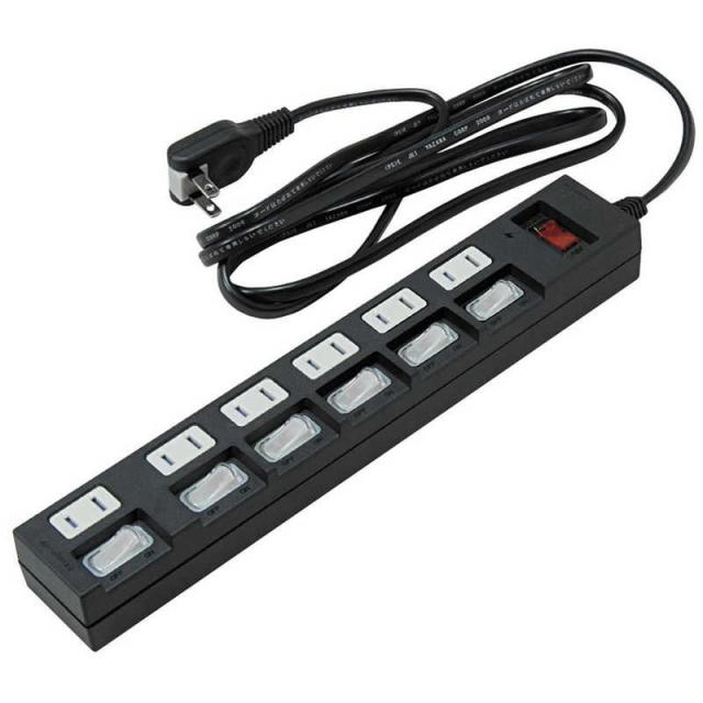 ヤザワ 個別集中スイッチ付 節電 電源タップ タップ 6個口2m 黒 YZBKS672B