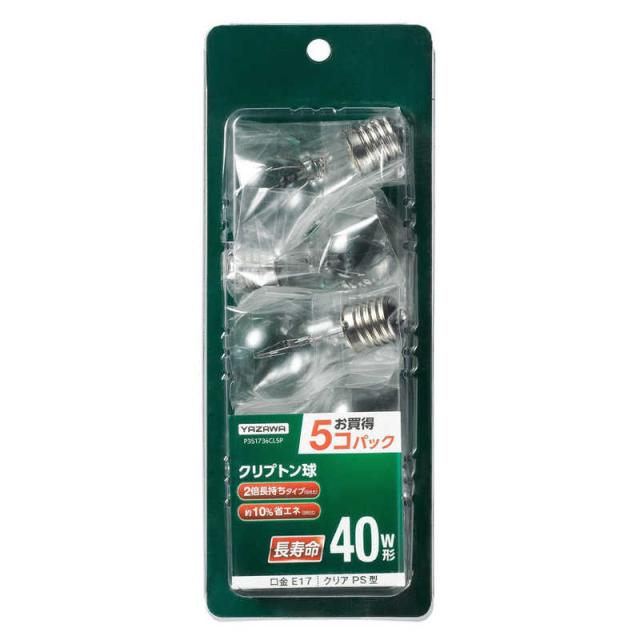 ヤザワ 省エネクリプトンランプ40W形クリア 長寿命 5個入 P351736CL5P