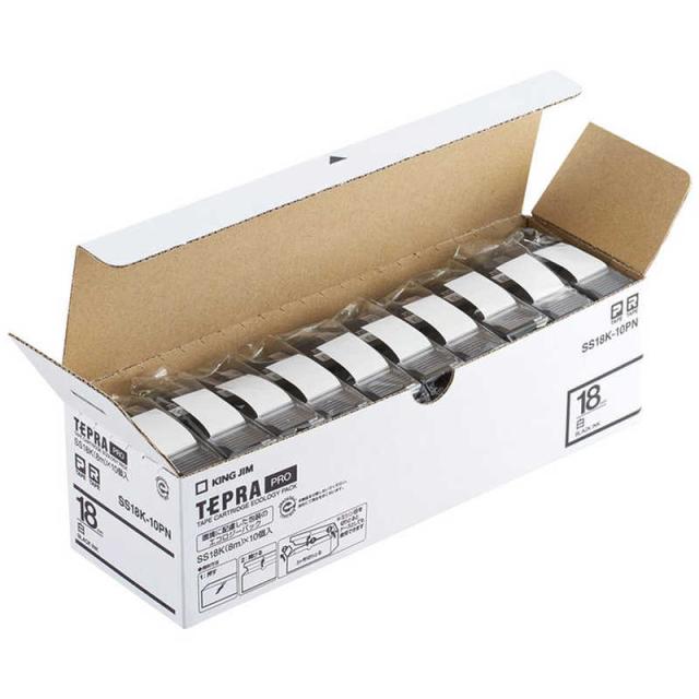 キングジム PROテープエコパック 10個入り TEPRA(テプラ) PROシリーズ 白 [黒文字 /18mm幅] SS18K-10PN