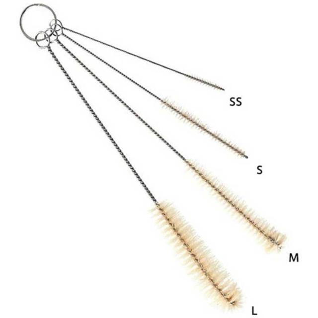 仕様1:本体サイズ(幅×高さ×奥行)mm:L/約230×φ25mm M/約210×φ18mm S/約160×φ10mm SS/約120×φ7mm素材:ブラシ/豚毛100%(SSのみ 毛:ナイロン) リング/スチール(メッキ加工) 線/ステンレス