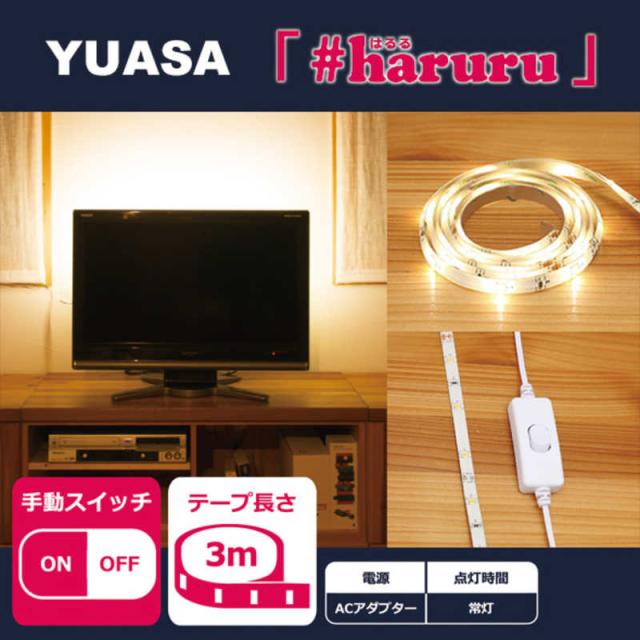 ユアサ 【AC電源】【手動スイッチ】【3m】かんたんに貼れるLEDテープ YHL-300Y