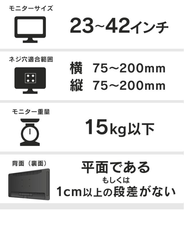 ・背面(裏面)が平面である、もしくは1cm以上の差がないディスプレイ