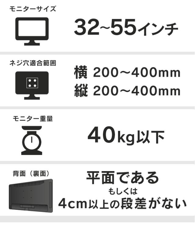 ・背面(裏面)が平面である、もしくは4cm以上の差がないディスプレイ
