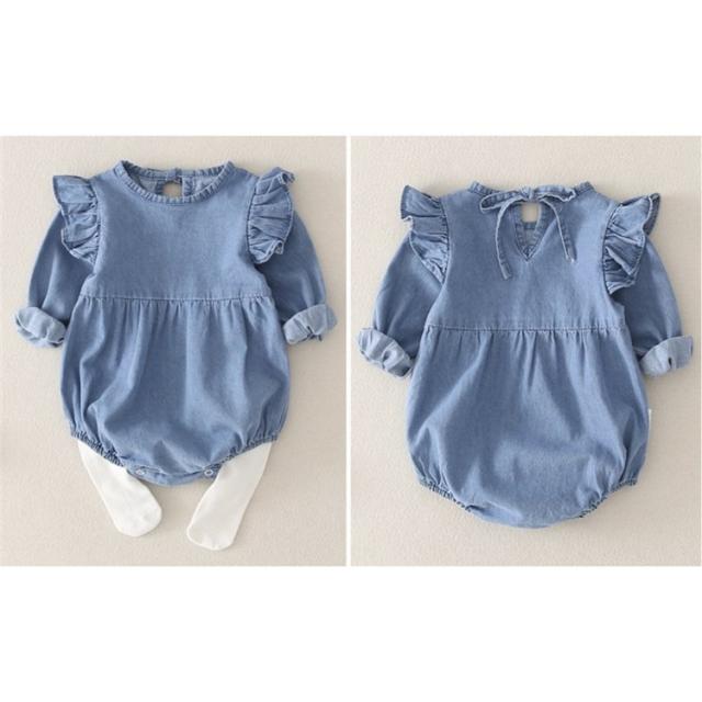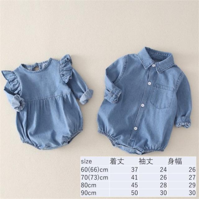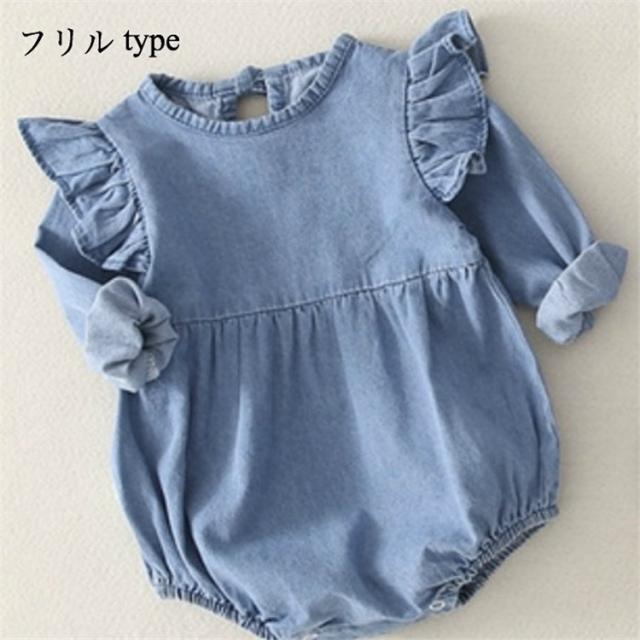 2タイプ デニム ロンパース カバーオール ベビー服 おしゃれ かわいい 出産祝い 女の子 春 夏 秋 子供服 新生児 ベビー プレゼント