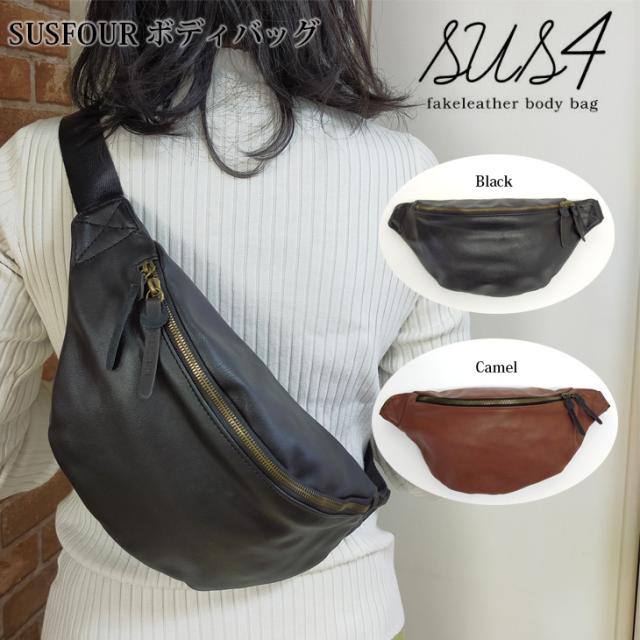 【ポイント】【メール便なら送料無料】SUSFOUR ボディバッグ ウエストポーチ ウエストバッグ 合皮 ペットボトル ボディ バッグ 合皮 バック ネーム sus409 高校生 大学生 上品 大人 ユニセックス プチプラ かっこいい サスフォー sus4 シンプル ボディーバック