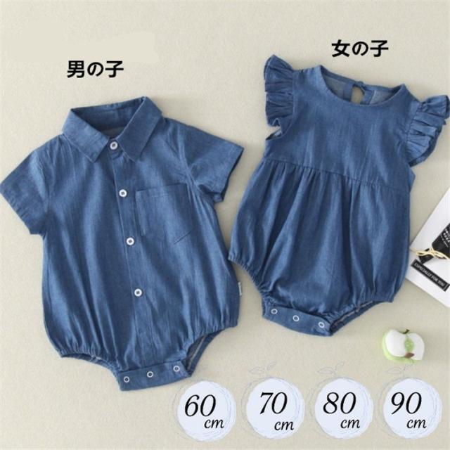 2type 半袖 デニム ロンパース 赤ちゃん ベビー服 新生児 女の子 男の子 子供 こども プレゼント ギフト おでかけ 夏新作 60 70 80 90