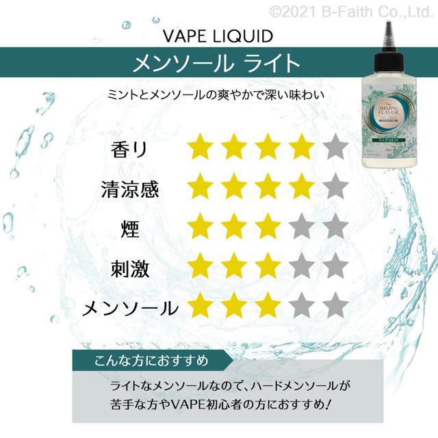 電子タバコ リキッド ベイプリキッド メンソール ライト 100ml ハードなメンソールが苦手な方に ニコチンフリー vapeリキッド