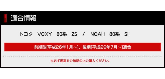 | 適合 | トヨタ 80系 ヴォクシー ZS / ノア Si 前期、後期の両方に適合 |
