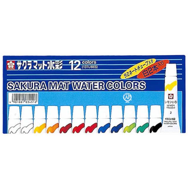 サクラクレパス [マット水彩] マット水彩12色(白2本入り)ラミネートチューブ入り EMW13