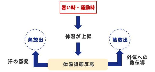 ![]() 人間のからだは体温が上がり過ぎたとき汗をかいたり熱をからだの外へ放出して 体温を下げます。