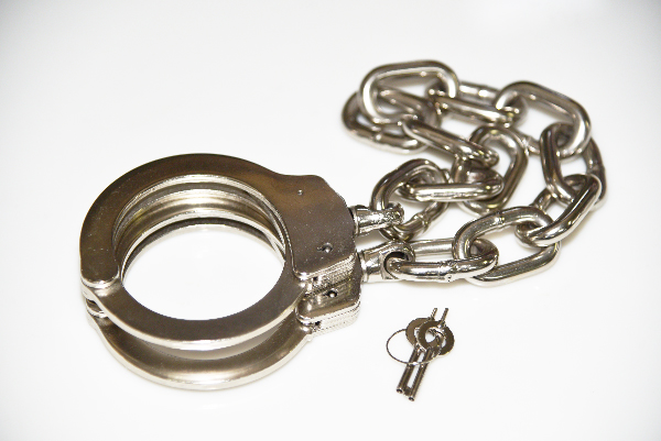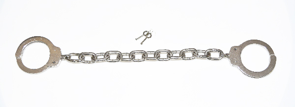SPHC(高張力鋼)で作られた、1076gのずっしりと頑丈な足錠。8mmもあるチェーンの太さは実用で使用されてもお芝居で使用されても迫力満点です。