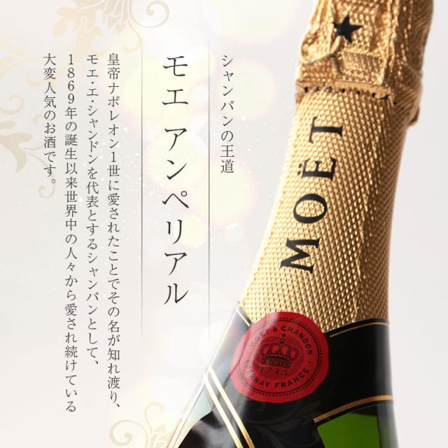 | 生産者モエ・エ・シャンドン社 生産地フランス/シャンパーニュ 品 種ピノ・ノワール、シャルドネ、 ピノ・ムニエ テイスト辛口 タイプ白/発泡/ミディアムボディ 内容量375ml |