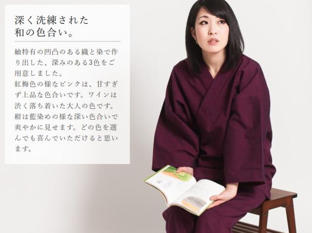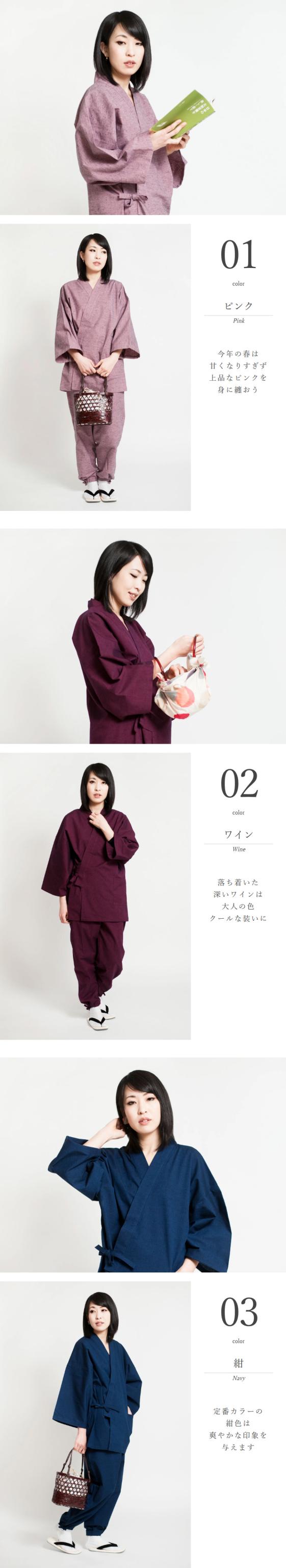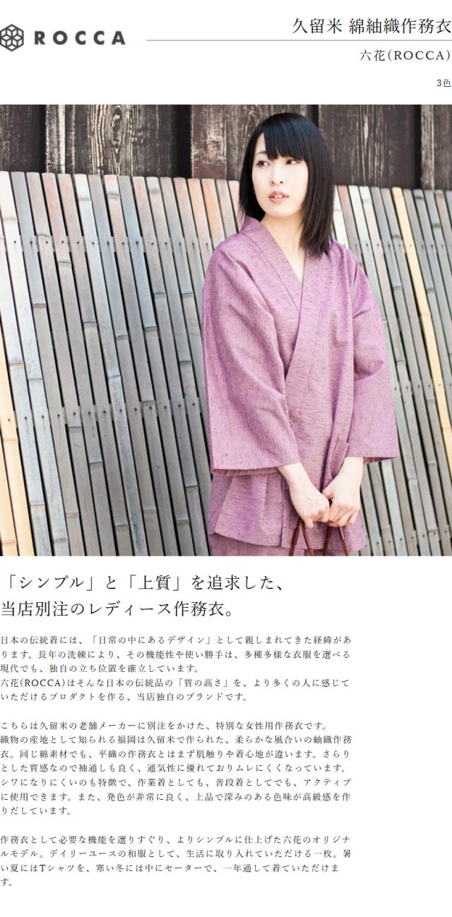 こちらは久留米の老舗メーカーに別注をかけた、特別なレディース作務衣です。
