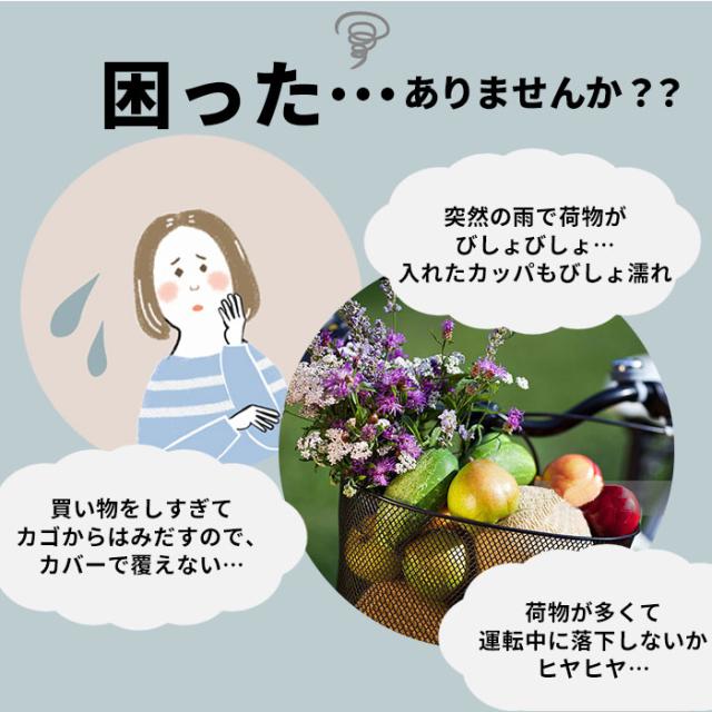 | 商品説明 | ・かごの荷物を雨から守る、自転車カゴカバー 前後セットが発売。 ・荷物の多さによってカバーの容量がグンっと10cmアップ! ・【前カゴカバー】は容量20Lから最大34Lに、【後ろカゴカバー】は容量23Lから最大40Lに! ・前カゴカバーは、普通サイズ〜電動アシスト専用の大きなカゴのサイズまでぴったりフィット。(適合カゴサイズをご確認ください) ・ファスナーの金具には紐が付いていて開閉しやすく、フタを全開するとガバっと大きく開くので荷物の出し入れがラクラク。 ・ファスナーから水が入ってもカバー周りの水抜き穴で荷物が濡れにくい仕様になっている。 ・耐水圧1000mm以上の水に強い生地を使用。雨をしっかりブロックするはっ水加工が施されている。(完全防水ではありません) ・取り付け方法はタグを前にしてカバーを上から被せる→被せきったらカバー後ろにあるコードロックを絞るだけ。前カゴカバーは、さらにコードロック下の面ファスナーを留めて簡単取り付け。 ・外から中身が見えないのもうれしい仕様。ひったくり防止にもなる、お役立ちアイテム♪ |