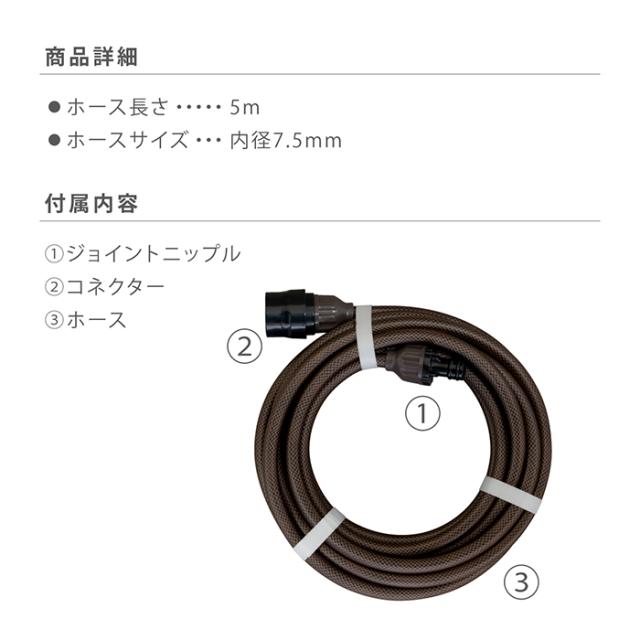 タカギ 延長ホース 5m 散水 耐圧 コネクター付き ジョイントニップル付き ホースリール接続 ブラウン R005BRCR 内径7.5mm takagi 公式 2年間保証