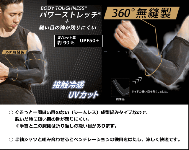 サイド部分の縫い目をなくした 春夏用 冷感シームレスアームカバー