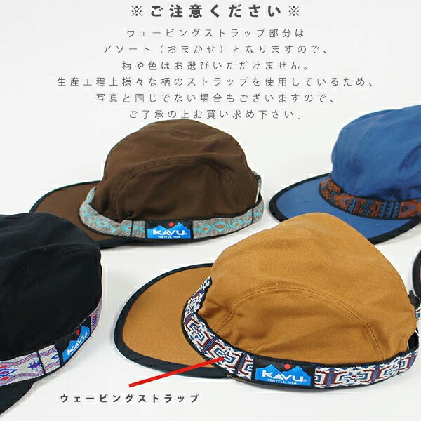 KAVU カブー オーガニックストラップキャップはブランドを代表するデザインのキャップです。 縁に付いたアジャスタブルウェビングテープによりサイズ調節ができ、 このウェイビングシステムにより、強風でも脱げにくくなっています。 また、ツバの裏側は黒一色で統一され、水面からの日光の照り返しを防ぐという工夫もしています。 サスティナブルに配慮したウェアづくりに取り組むKAVUらしく、 こちらのキャップでは100%オーガニックコットンを使用しています。 このキャップを選んだ日は、いつもの毎日のようで少し違う少し遊び心のある1日になるかもしれません! 新しい1日の始まりや、友人と過ごすキャンプサイトでの何げないひと時、 大切な人との1日の終わりに夕日を眺める、そんなタイミングにピッタリです。 KAVU is from SEATTLE, WASHINGTON シアトル発祥のKAVUなウェアを着て、毎日をENJOYしてください! ※アグリーカラーは展開しているカラーの生地を使っており色の組み合わせは全て異なります。 写真のパターンは代表パターンとなります。 よって商品の特性上お選びすることはできません。 ご了承の上お買い求め下さい。 ※ウェービングストラップ部分はアソート(おまかせ)となりますので、 柄や色はお選びいただけません。 生産工程上様々な柄のストラップを使用しているため、 写真と同じでない場合もございますので、ご了承の上お買い求め下さい。 | ||||||