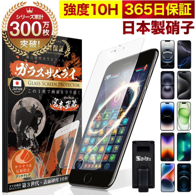 【究極のさらさら感】 iPhone ガラスフィルム アンチグレア 保護フィルム iPhone15 14 13 SE (第二世代) 12 11 Pro max iPhone XR XS iPhone8 iPhone7 Plus iPhone6s iPhoneX iPhoneXs 10H ガラスザムライ 液晶保護フィルム ゲーム オーバーズ