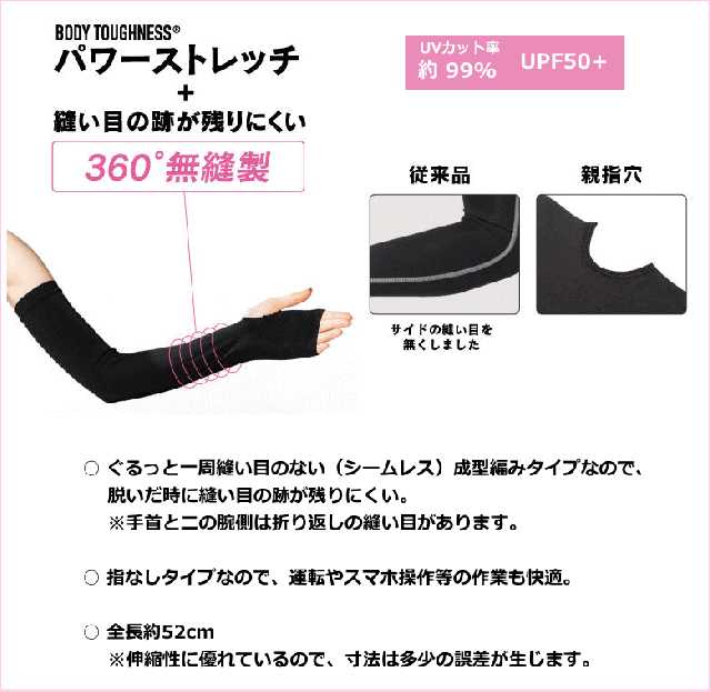 サイド部分の縫い目をなくした 春夏用 冷感シームレスアームカバー