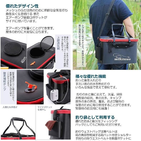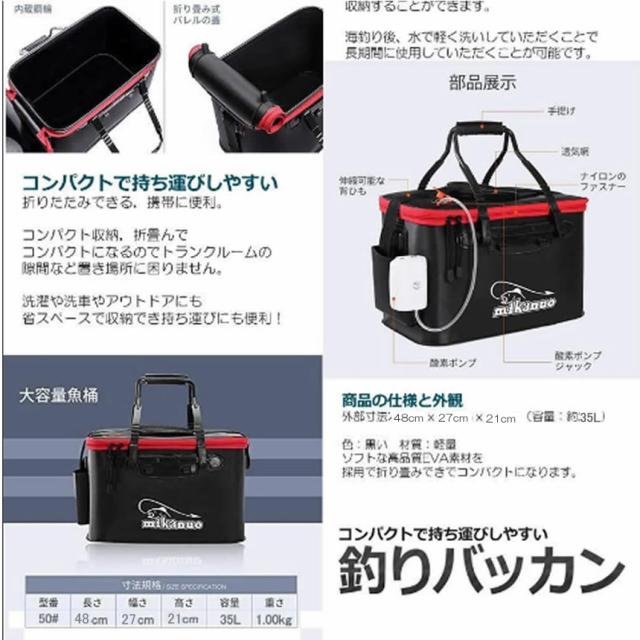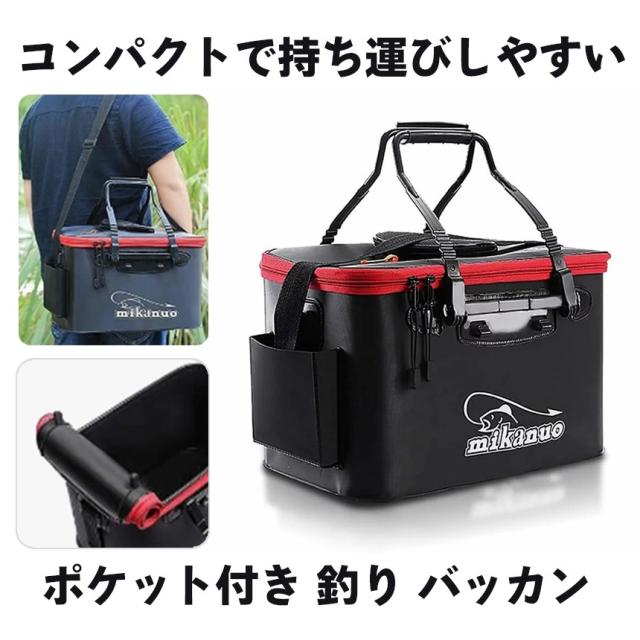 ポケット付き 釣り バッカン 50cm 35L 屋外折りたたみ EVA製 ポータブル キャンプ用 洗濯用BAKANPO-50