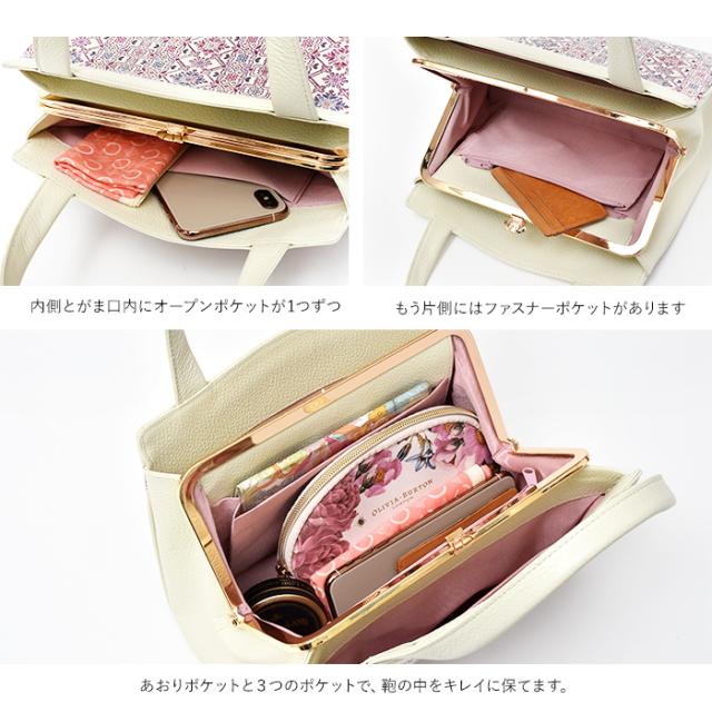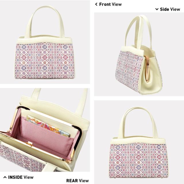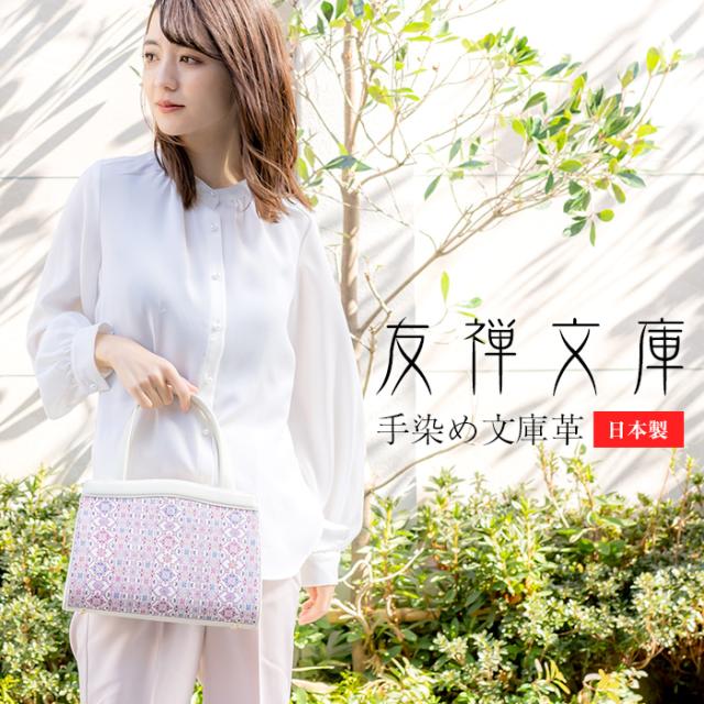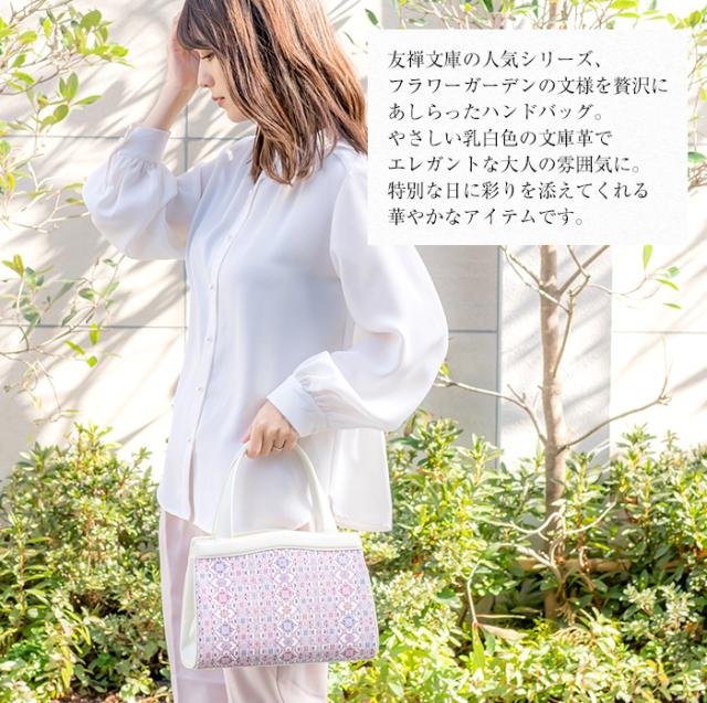 バッグ ハンドバッグ がま口 口金 かばん レディース 本革 日本製 花柄 文庫革 手描き 和風 和柄 式典 フラワーガーデン 友禅文庫