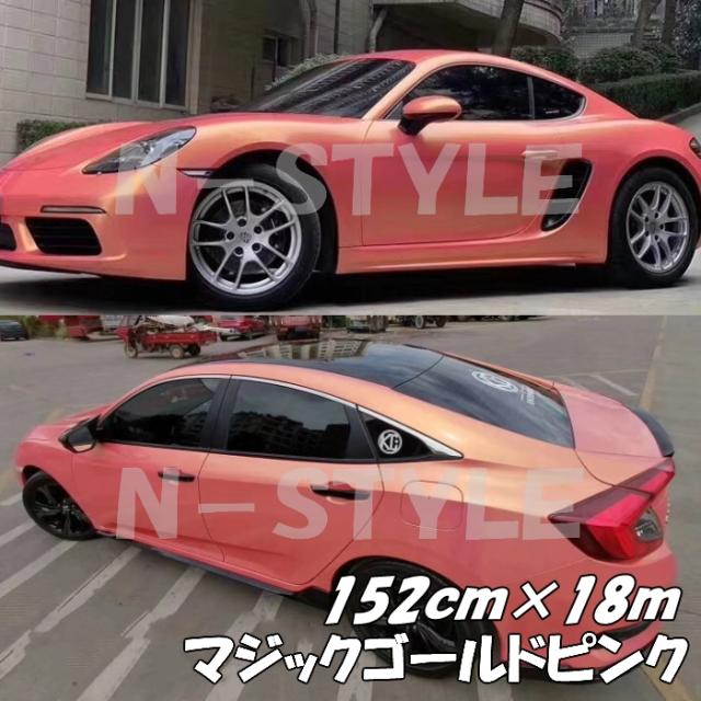 ラッピングシートマジックゴールド ピンク 152cm×18m 艶あり カーラッピングフィルム 耐熱耐水曲面対応裏溝保護フィルム付 カッティングシート