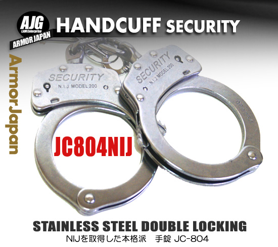 市場に出回っている手錠の中でもNIJ認証を取得した手錠は少ないのが現状です。 NIJ認証は試験項目が厳しく、また取得するための費用もかさみます。 JC-804はNIJ Standard 0307.01を取得し手錠本体にNIJ-MODEL200が刻印されたSECURITYのカフになります。