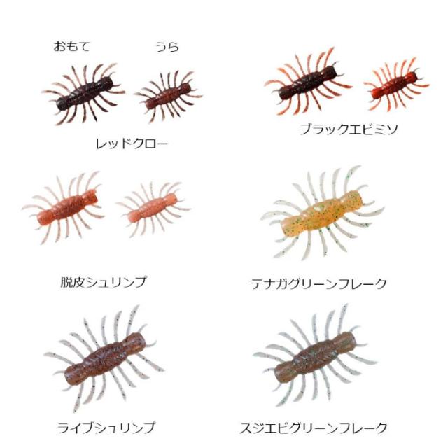 ●2.固めのマテリアル3.フォールで動く全ての手4.フックを真っ直ぐ刺しやすいスリット5.オフセットでもマス針でも使用可能6.上下左右のないボディデザイン・レッドクロー(ツートン)・ブラックエビミソ(ツートン)・脱皮シュリンプ(ツートン)・テナガグリーンフレーク2020年霞ヶ浦水系で多くのデカバスを釣り上げた佐々木勝也テスター監修のシュリンピードに、クロー系、エビミソ系、シュリンプ系の鉄板の4色が追加になります。